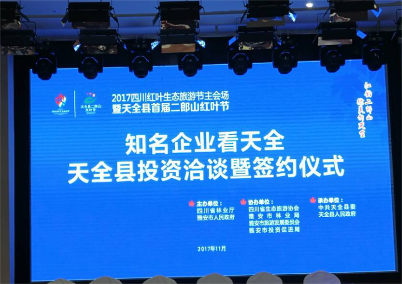 11月9日,米兰体育-米兰(中国)官网 董事长漆家华,总经理罗伦全、副总经理钟焱宇参加“知名企业看天全”2017天全县投资洽谈暨签约仪式。