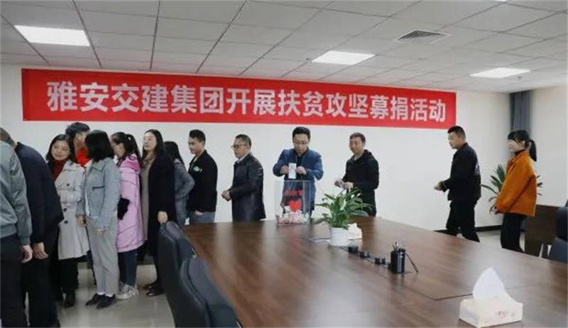 三是扶产业、送资金,倾心倾力帮扶。参加扶贫产品“以购代捐”“以购代扶”行动,积极对接扶贫农产品供需信息,采购扶贫产品22.54万元,受益县达33个;扶贫日期间,组织现场募捐活动,集团领导班子成员带头献爱心,未能通过现场捐赠的员工,通过雅安市慈善总会微信公众号、“中国社会扶贫网”爱心平台等网络平台进行网络捐赠,截至10月19日12时,共募集捐款近4万元。此外,交建资产公司党支部和雨名快通临时党支部联合开展脱贫攻坚主题党日活动,募得资金2.2万元,现场全额转交雨城区青江街道党工委,全部用于金鸡村3户建档立卡贫困户房屋改造。