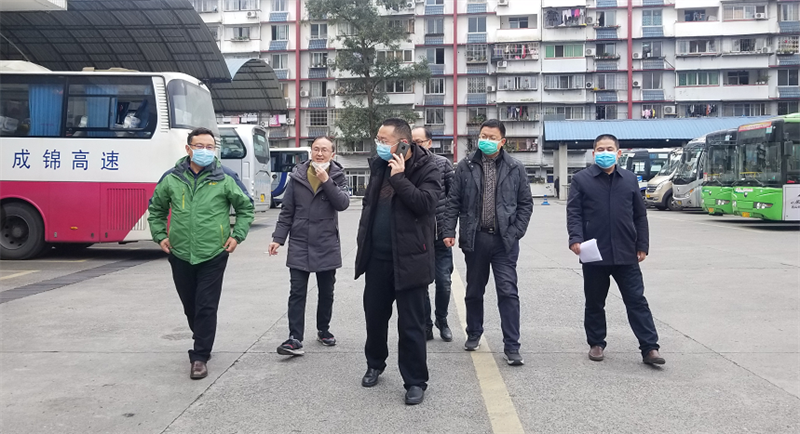 1月30日,集团公司党委书记、董事长、疫情防控工作领导小组组长漆家华等6名同志到西门车站督导蜀通公司客运班车新型冠状病毒肺炎疫情防控工作。