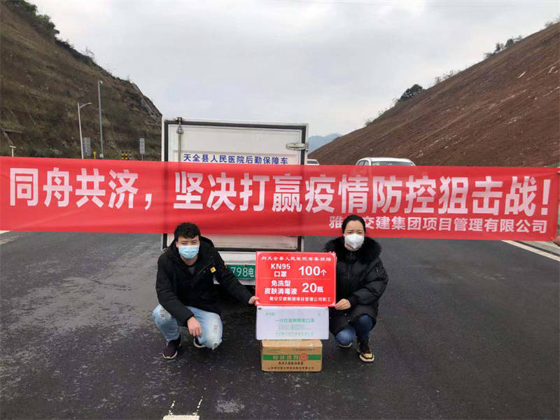2月5日,交建集团项目管理公司自行组织员工筹集善款,通过多方筹集购买KN95口罩100个、免洗型皮肤消毒液20瓶。捐赠给天全县人民医院。为冲在疫情防控第一线的白衣天使们贡献出一份力量,愿意与无数默默无闻、身处一线的人员一起打赢这场疫情防控狙击战。