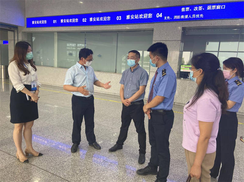 陈武一行分别检查了火车站出、入站口的人员登记、测温、扫码等防疫措施落实情况,听取了相关情况汇报,对运通公司开展雅安火车站疫情防控工作以来所取得的成效给予了充分肯定。