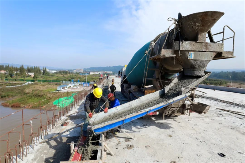11月9日,横跨青衣江上的草坝青衣江大桥(茶地坎码头渡改桥)项目建设正酣。目前,主体工程已完工,转向桥面施工,工程总量已完成超9成。