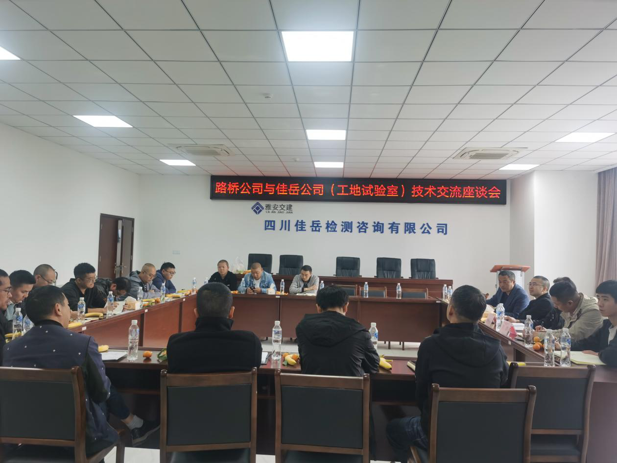 组织所属四川康藏路桥有限责任公司项目施工技术负责人和四川佳岳检测咨询有限公司工地试验室技术负责人进行技术交流。集团公司总工程师程学强参加座谈。
