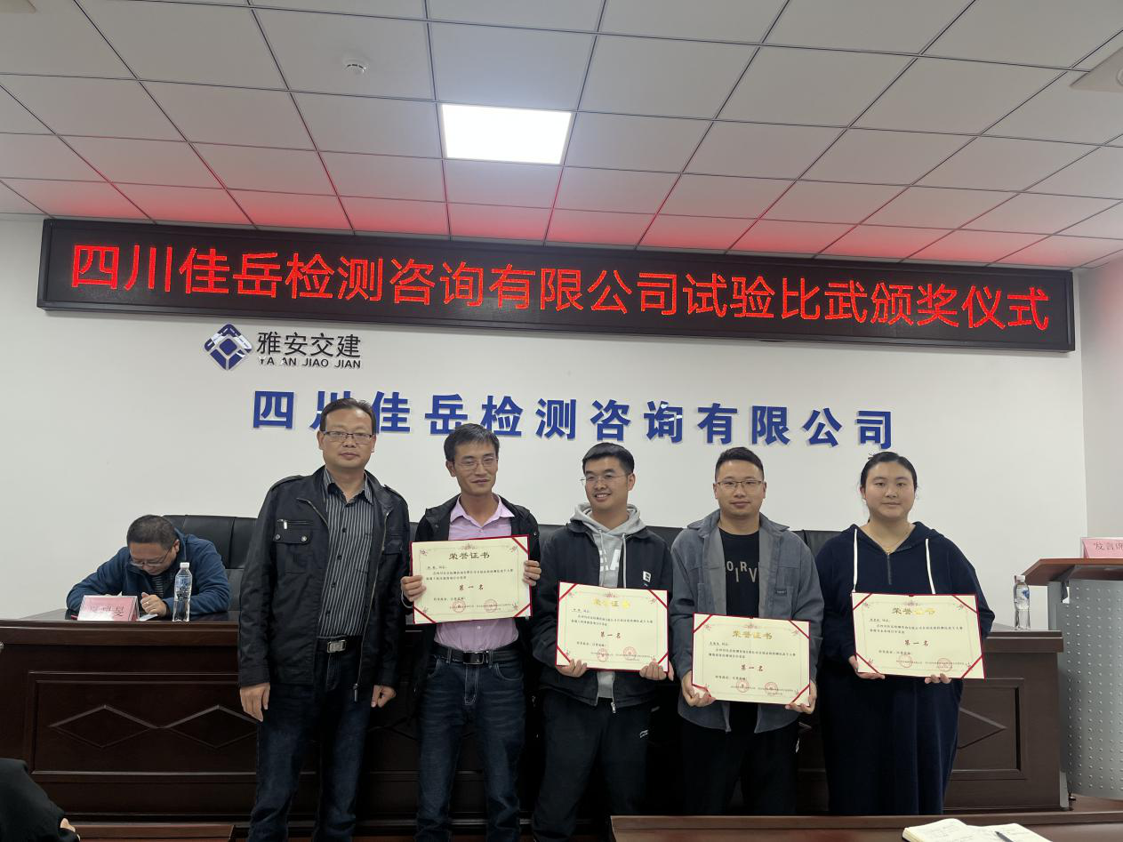 所属四川佳岳检测咨询有限公司举行颁奖典礼,对第一届试验检测技能比武大赛进行总结和表彰。