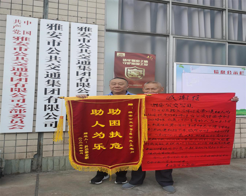 近日,雅安市公共交通集团有限公司5路公交车驾驶员支亳川,在行驶过程中热心帮助一老人成功寻找到家人,给文明雨城增添了暖心的一幕。4月17日,老人和家人带着亲手写的感谢信和锦旗,来到公交集团当面感谢公交集团和5路驾驶员支师傅热心助人的善举。