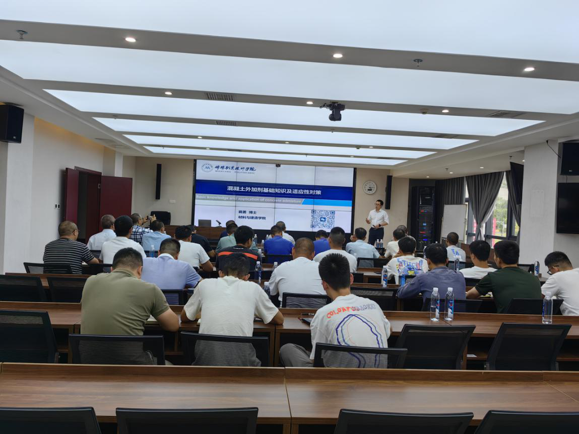 培训邀请绵阳职业技术学院材料与建造学院院长贾陆军、蒋勇两位博士授课,重点围绕配合比设计中需注意的事项展开,详细讲解配合比设计要点,分析原材料选择及矿粉、粉煤灰掺合料掺配比例的重要性,总结交流机制砂在混凝土中的应用技术,讲解混凝土外加剂基础知识、分析目前外加剂在使用过程中适应性问题和原因,通过真实案例分析混凝土质量问题的原因及管控要点等。