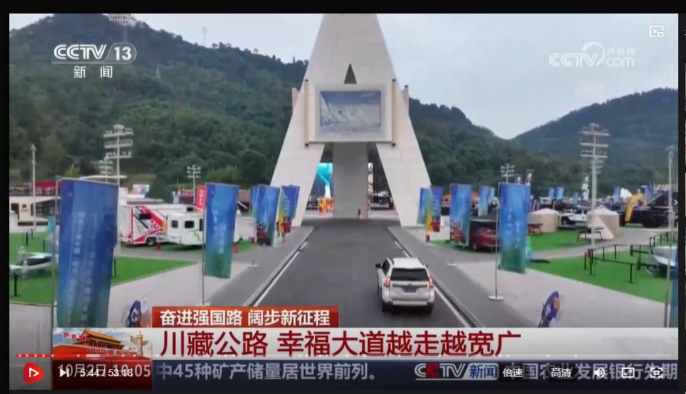 为庆祝新中国成立75周年,展现中国式现代化进程中的发展成就。10月2日,中央广播电视总台推出《[奋进强国路 阔步新征程]川藏公路 幸福大道越走越宽广》特别节目,对大本营基本情况及正在开展的全国装备展销会进行了报道。
