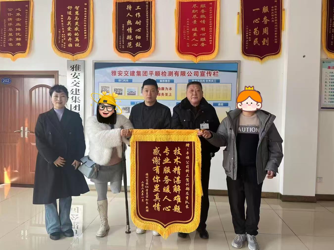 “合格了,感谢你们给予我贴心的照顾和一路陪伴,让我顺利通过考试,帮助我完成了人生中的一件大事!”近日,雅州驾校残疾考生宋女士将一面印有“技术精湛解难题 专业服务暖人心 感谢有你显真情”字样的锦旗送到了平顺公司,对工作人员为他们提供热情、周到的服务表示感谢。