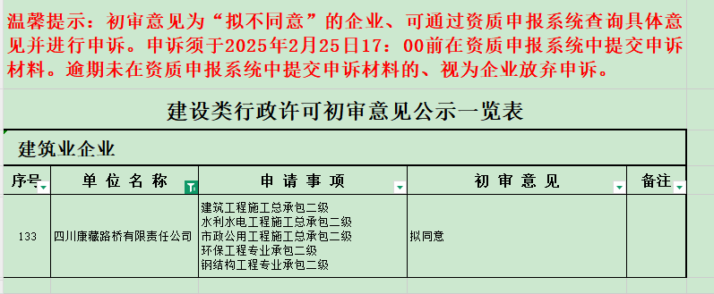 近日,在四川省住房和城乡建设厅印发的《关于建设类企业行政许可事项初审意见的公示》中,路桥公司顺利通过11项重要资质延续初审,全面巩固了企业综合竞争力。