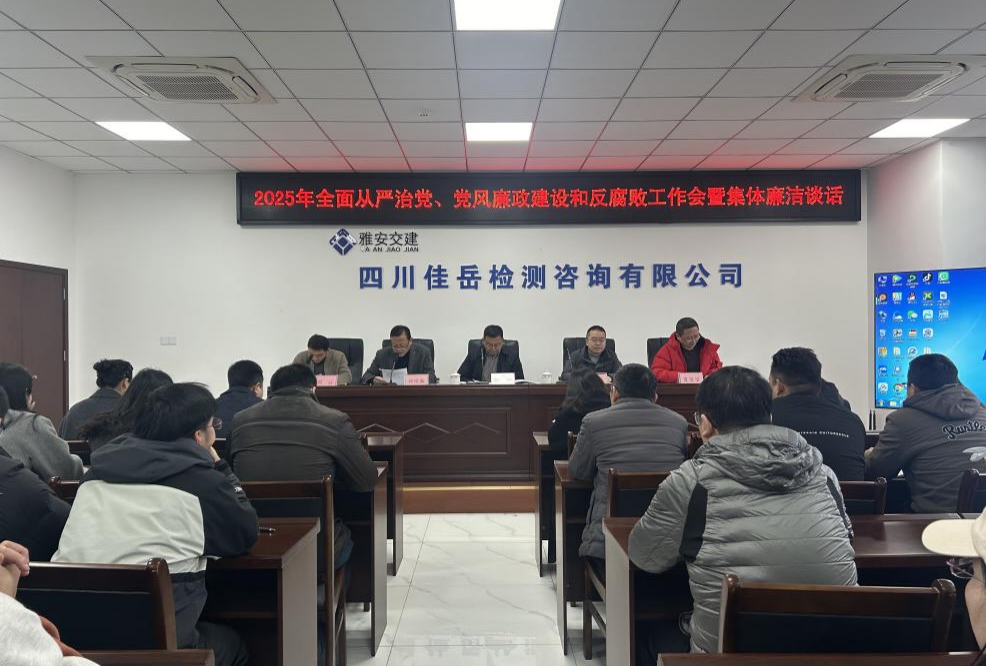 3月20日,四川佳岳检测咨询有限公司召开2025年全面从严治党、党风廉政建设和反腐败工作会暨集体廉洁谈话,集团党委专职副书记张万清、总工程师程学强参加会议并提相关要求。