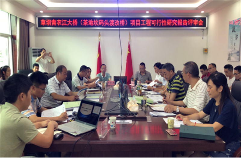 8月14日, 市交建集团组织召开了草坝青衣江大桥(茶地坎码头渡改桥)项目工程可行性研究报告评审会。与会专家详细听取、审阅了相关文件及资料,经充分讨论形成专家组意见。雨城区政府、经开区管委会、市发改委、市住建局、市交通局、市水务局、市国土局、市旅发委等相关部门参加了评审会议。设计单位将根据专家组及相关部门意见对工可报告进行修改完善。