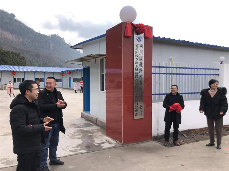 集团公司总经理罗伦全、副总经理丁春、路桥公司执行董事程学强、副总经理吴小明共同揭牌。揭牌仪式结束后,领导一行参观了项目部驻地,对驻地标准化、规范化建设给予了肯定。