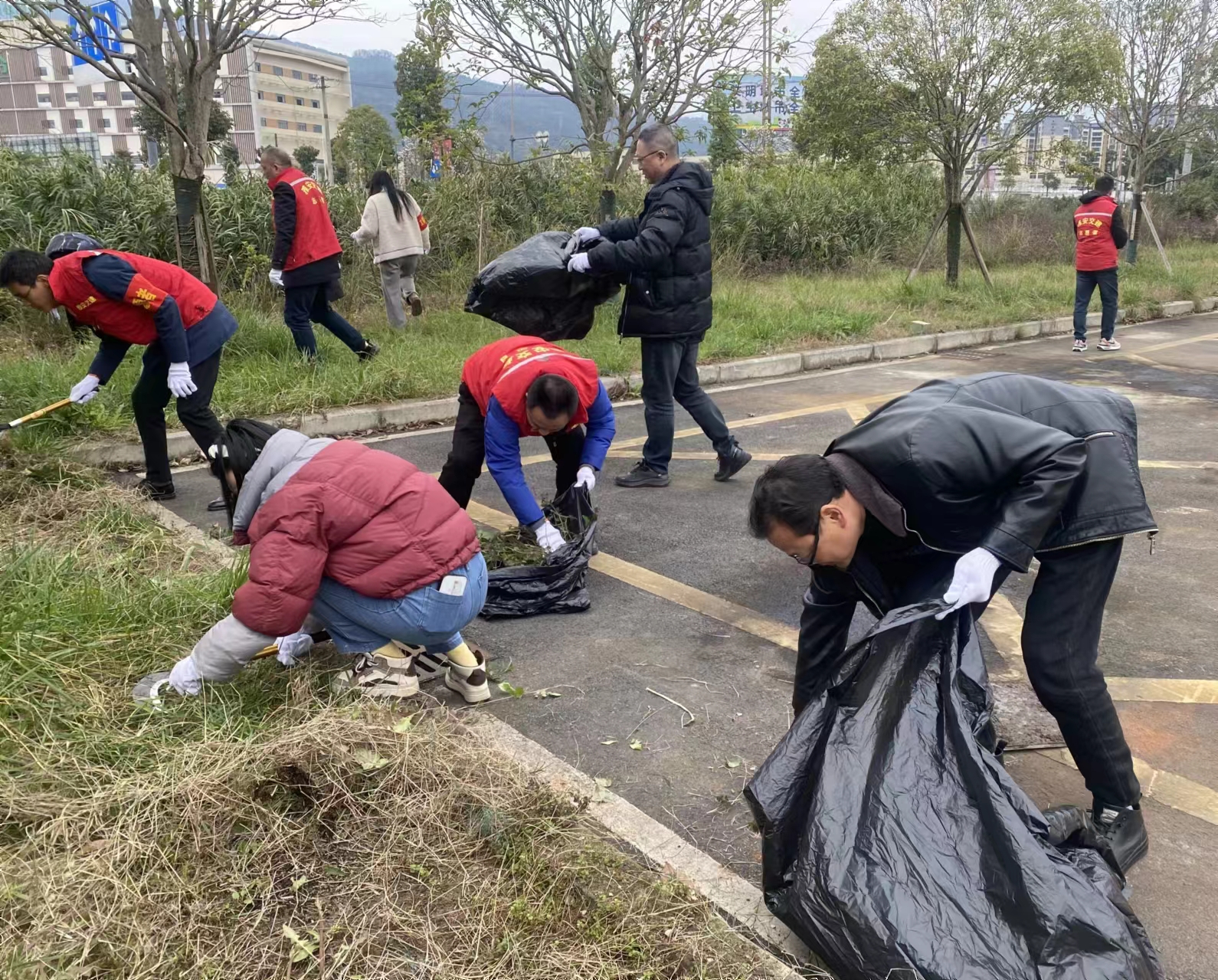 活动中,20余名党员、入党积极分子、团员身着红马甲,肩戴红袖章,手持镰刀、垃圾袋等清洁工具,以小组的形式,明确分工,对大兴街道兴贸路A段绿化带杂草进行清理,并捡拾各种纸屑、废弃塑料袋等垃圾。