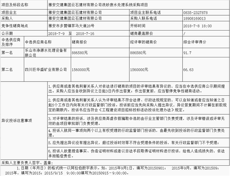 米兰体育-米兰(中国)官网 云石建材有限公司洗砂废水处理系统采购项目中选供应商公示