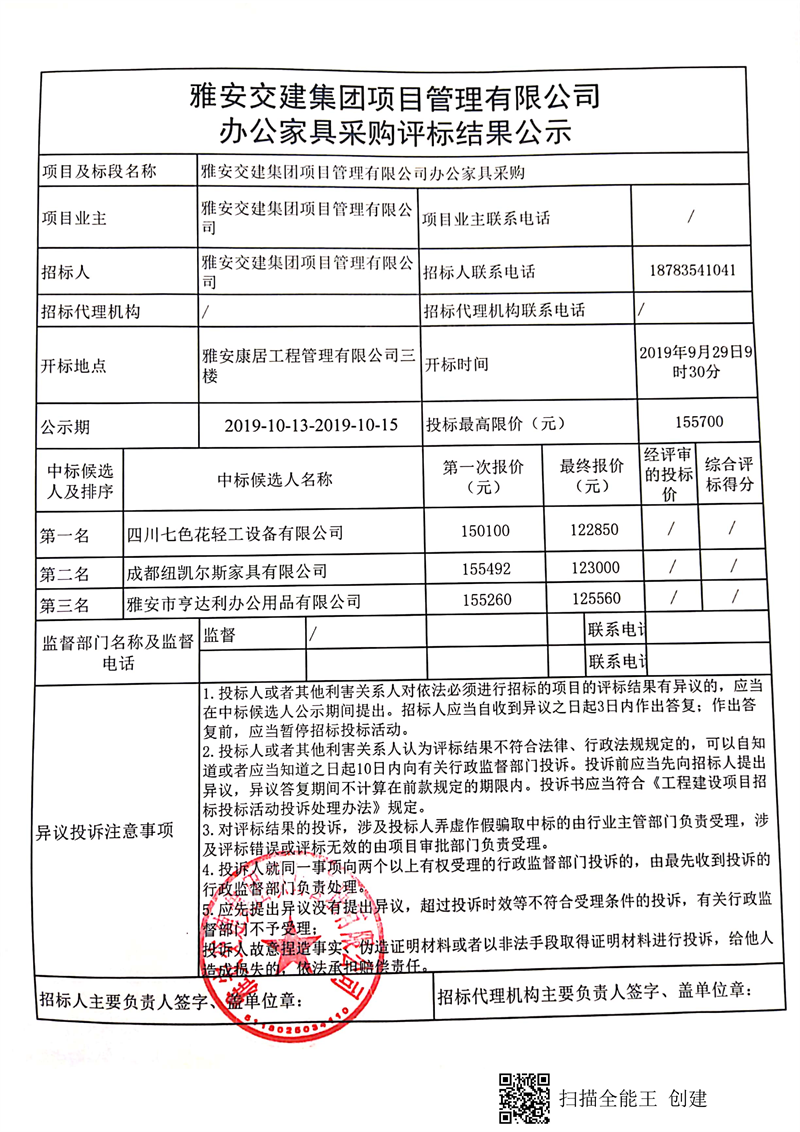 米兰体育-米兰(中国)官网 项目管理有限公司办公家具采购评标结果公示