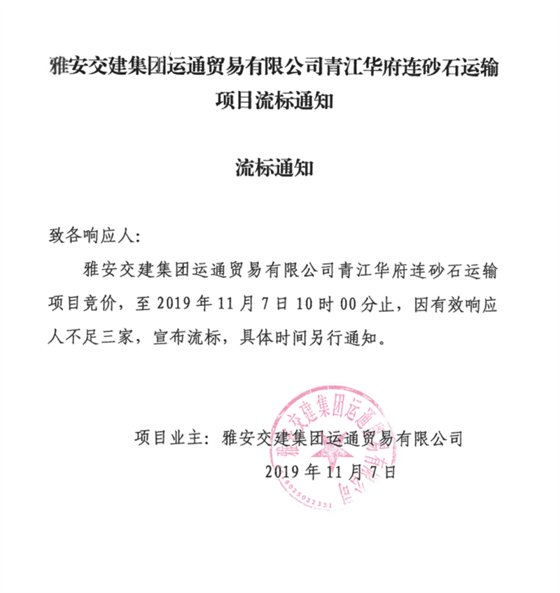 米兰体育-米兰(中国)官网 运通贸易有限公司青江华府砂石运输项目流标通知