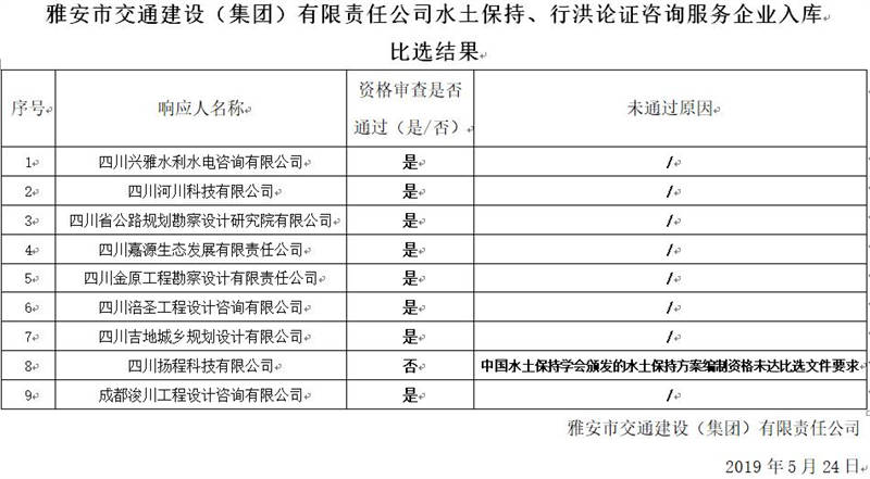 雅安市交通建设(集团)有限责任公司水泥生产商、代理经销商入库比选结果公示