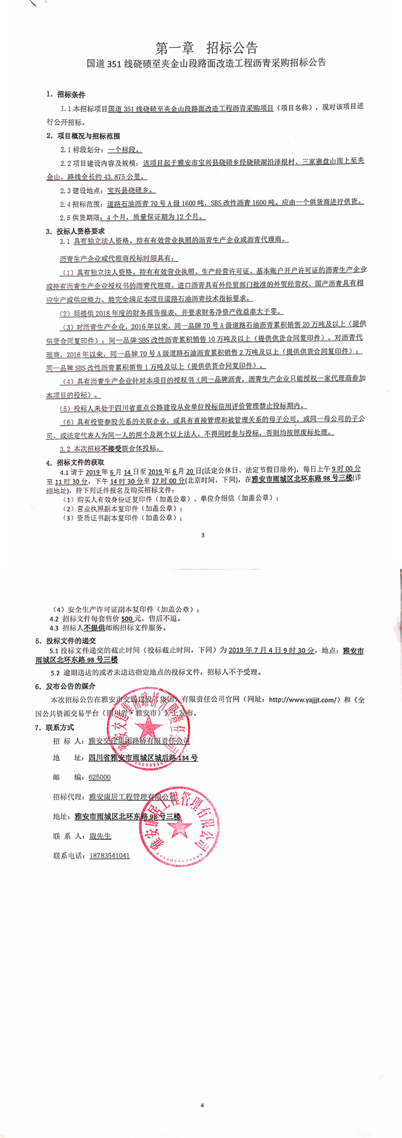 米兰体育-米兰(中国)官网 路桥有限责任公司国道351线硗碛至夹金山段路面改造工程沥青采购招标公告
