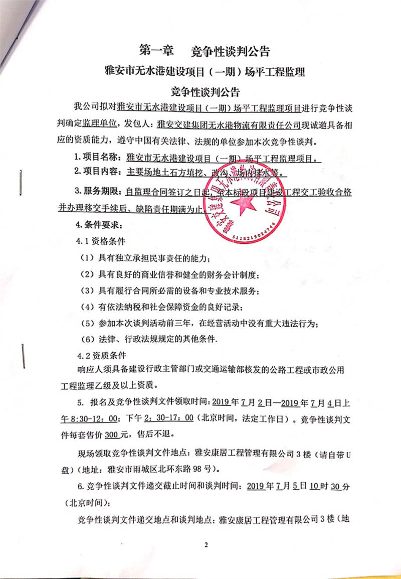 米兰体育-米兰(中国)官网 无水港物流有限责任公司雅安市无水港建设项目(一期)场平工程监理竞争性谈判公告