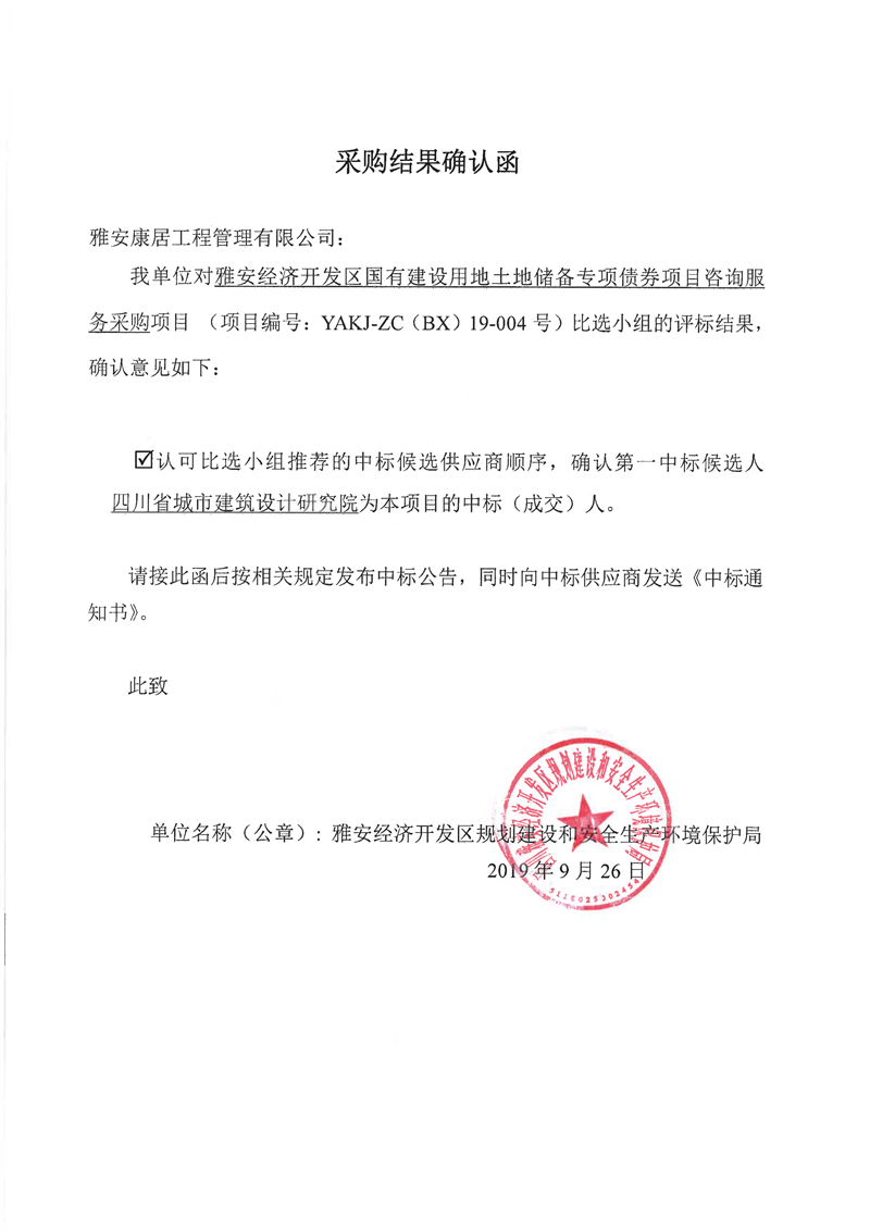 雅安经济开发区国有建设用地土地储备专项债券项目咨询服务采购比选结果公示