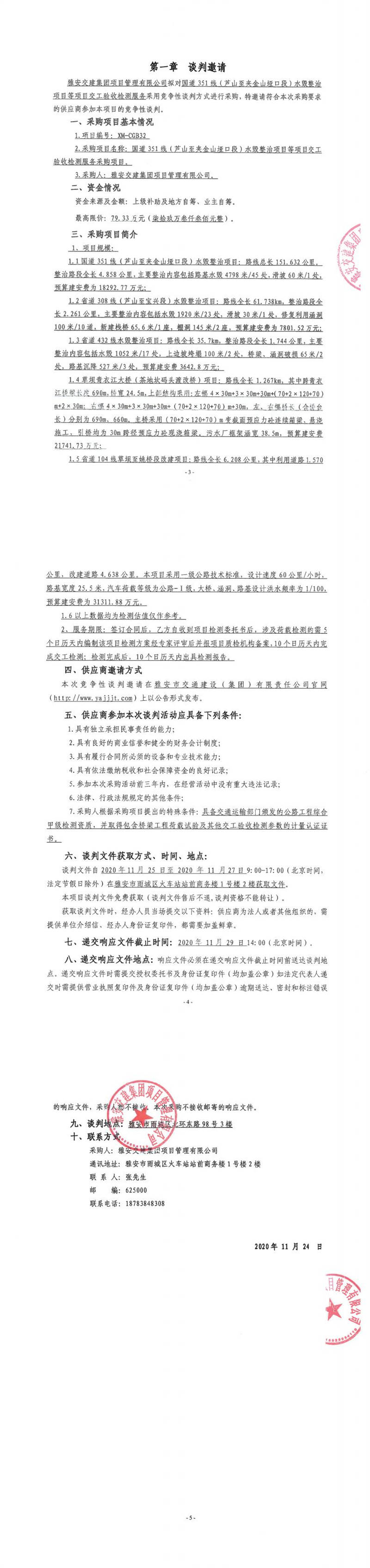 米兰体育-米兰(中国)官网 项目管理有限公司国道351线(芦山至夹金山垭口段)水毁整治项目等项目交工验收检测服务采购项目竞争性谈判公告