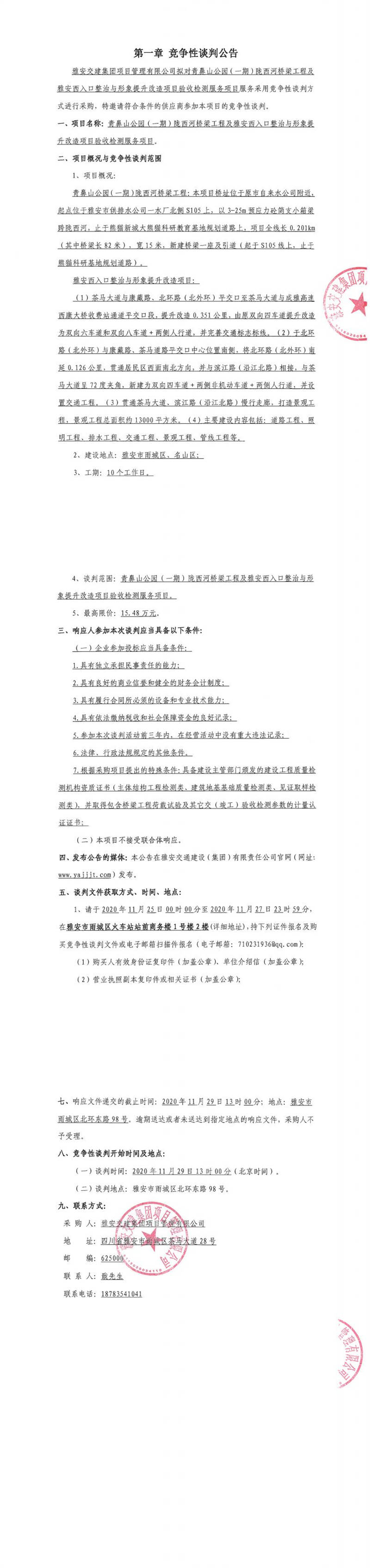 米兰体育-米兰(中国)官网 项目管理有限公司青鼻山公园(一期)陇西河桥梁工程及雅安西入口整治与形象提升改造项目验收检测服务项目竞争性谈判公告