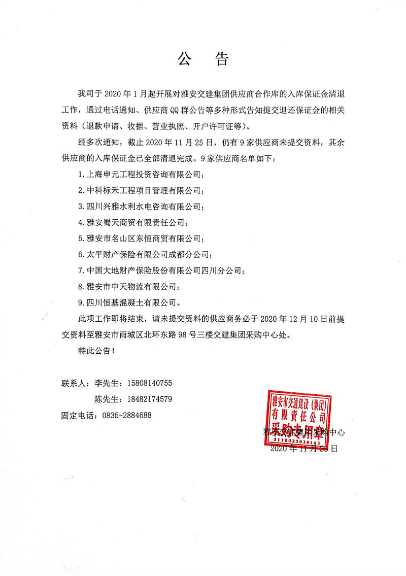 关于米兰体育-米兰(中国)官网 供应商合作库入库保证金清退相关事宜的公告