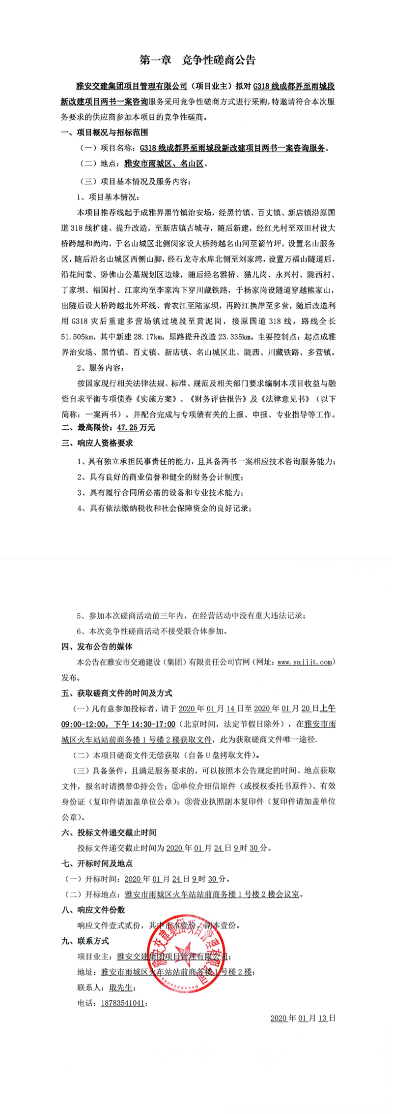 米兰体育-米兰(中国)官网 项目管理有限公司G318线成都界至雨城段新改建项目勘测定界服务竞争性磋商公告