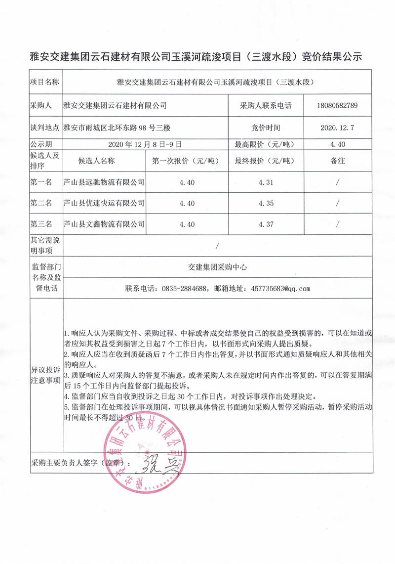 米兰体育-米兰(中国)官网 云石建材有限公司玉溪河疏浚项目(三渡水段)竞价结果公示