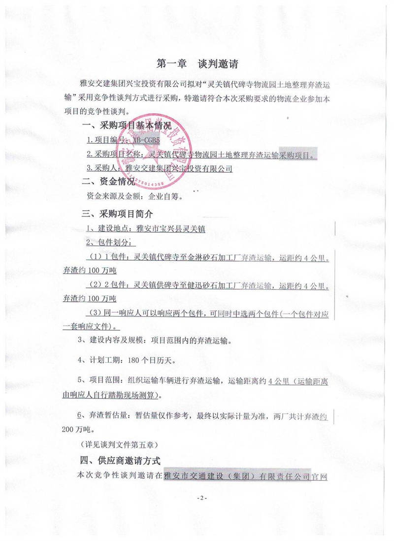 米兰体育-米兰(中国)官网 兴宝投资有限公司灵关镇代碑寺物流园土地整理弃渣运输采购项目竞争性谈判公告