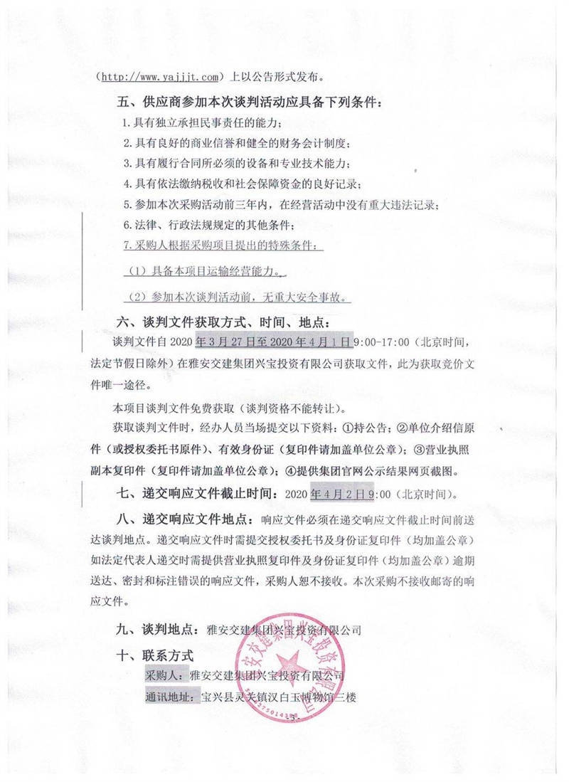 米兰体育-米兰(中国)官网 资产经营管理有限公司成雅高速金鸡关互通及服务区项目(雅安东互通综合提升改造)水土保持监测项目竞争性磋商公告