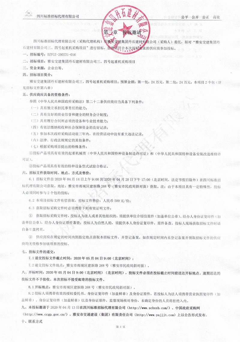 米兰体育-米兰(中国)官网 丹石建材有限公司三、四号起重机采购项目招标公告