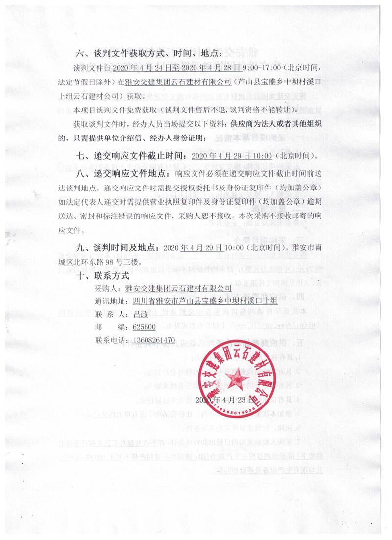四川康藏路桥有限责任公司国道351线芦山至夹金山垭口段水毁整治项目砂石生产加工合作采购项目竞争性谈判评标结果公示