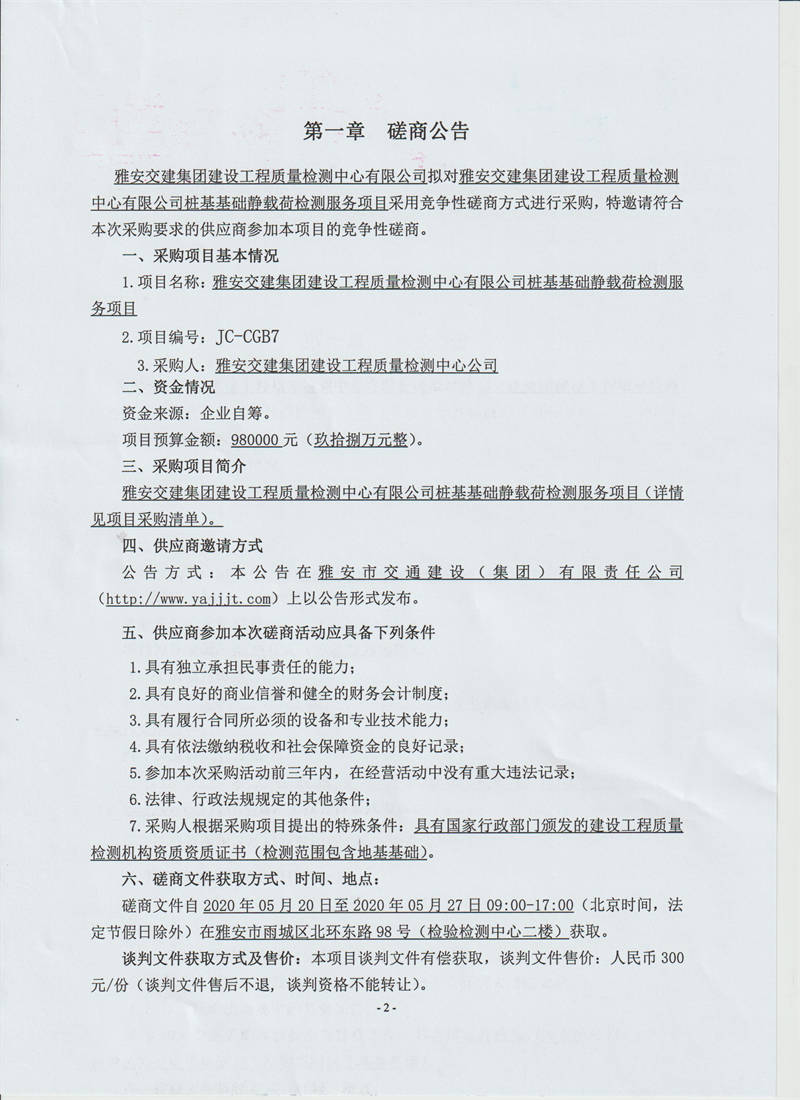 米兰体育-米兰(中国)官网 建设工程质量检测中心有限公司桩基基础静载荷检测服务采购项目竞争性磋商公告