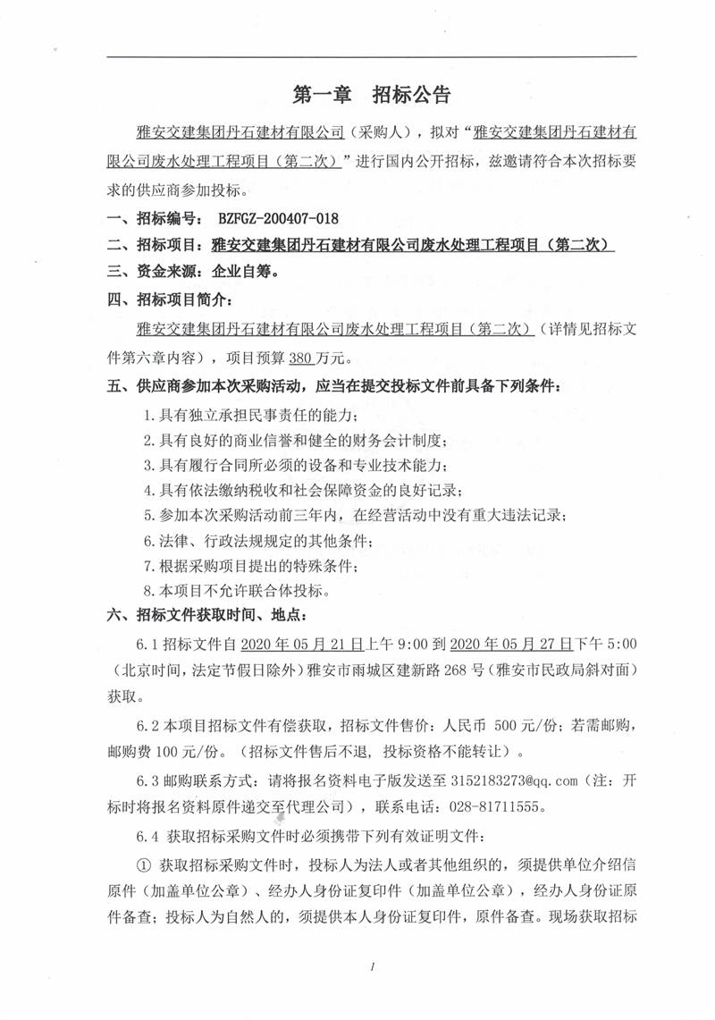 米兰体育-米兰(中国)官网 丹石建材有限公司废水处理工程项目(第二次)招标公告
