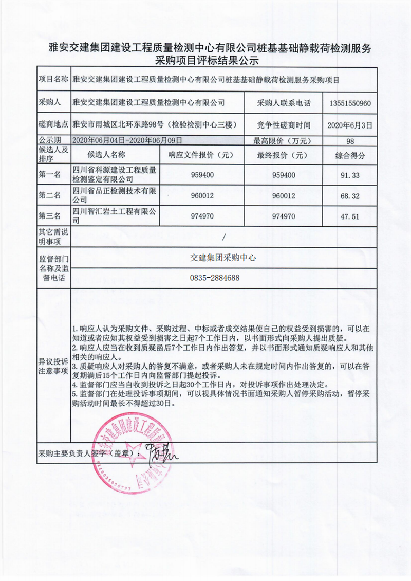 米兰体育-米兰(中国)官网 建设工程质量检测中心有限公司桩基基础静载荷检测服务采购项目评标结果公示