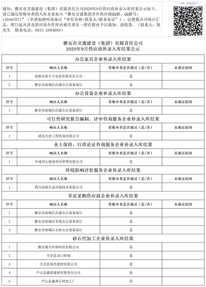 米兰体育-米兰(中国)官网 2020年9月供应商补录入库结果公示