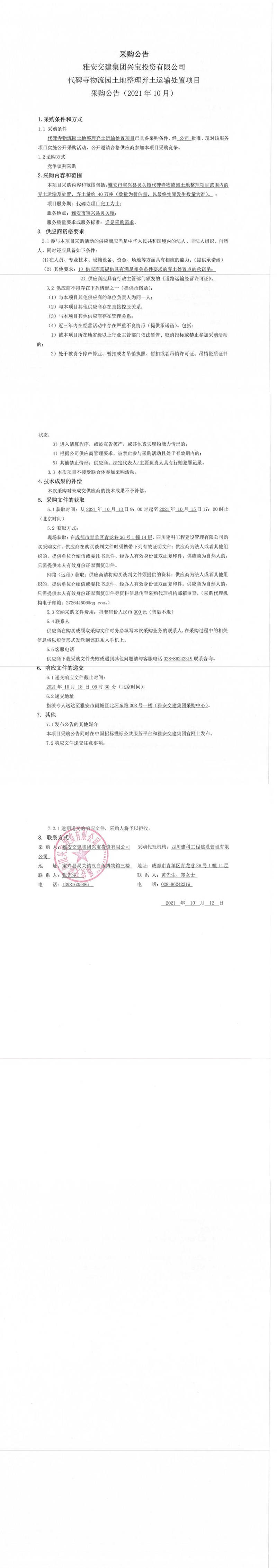 米兰体育-米兰(中国)官网 兴宝投资有限公司代碑寺物流园土地整理弃土运输处置项目采购公告