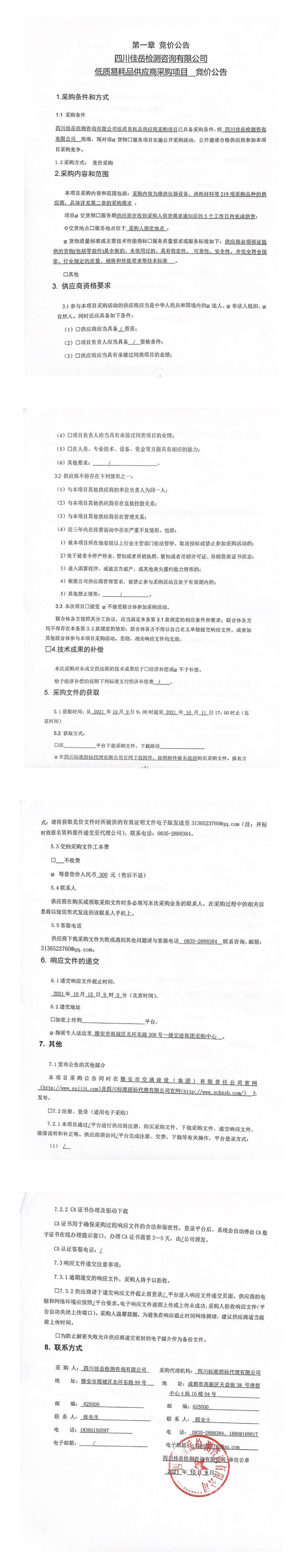 四川佳岳检测咨询有限公司低质易耗品供应商采购项目竞价公告