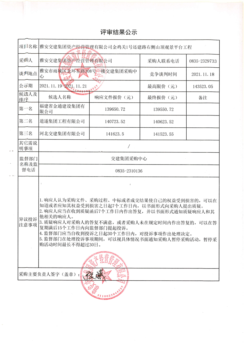 米兰体育-米兰(中国)官网 资产经营管理有限公司金鸡关1号还建路右侧山顶观景平台工程评审结果公示