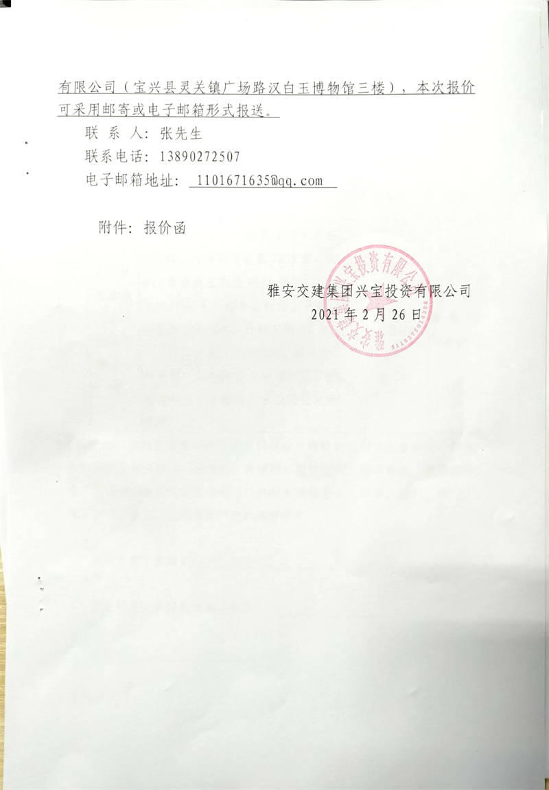 米兰体育-米兰(中国)官网 兴宝投资有限公司宝兴县大渔溪河道疏浚项目市场调查询价公告