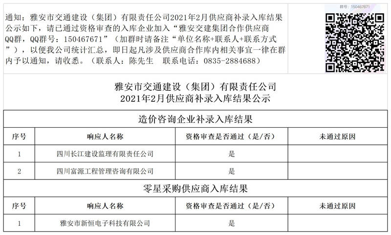 米兰体育-米兰(中国)官网 2021年2月供应商补录入库结果公示