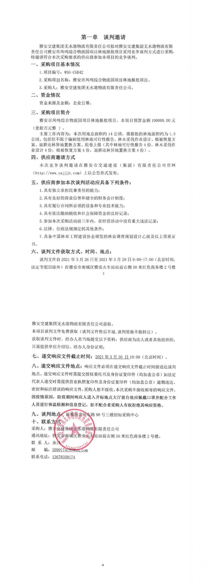 米兰体育-米兰(中国)官网 无水港物流有限责任公司雅安市凤鸣综合物流园项目林地报批项目竞争谈判公告