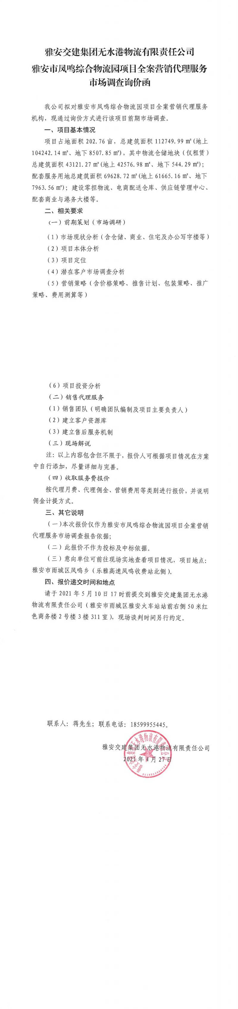 米兰体育-米兰(中国)官网 无水港物流有限责任公司雅安市凤鸣综合物流园项目全案营销代理服务市场调查询价函