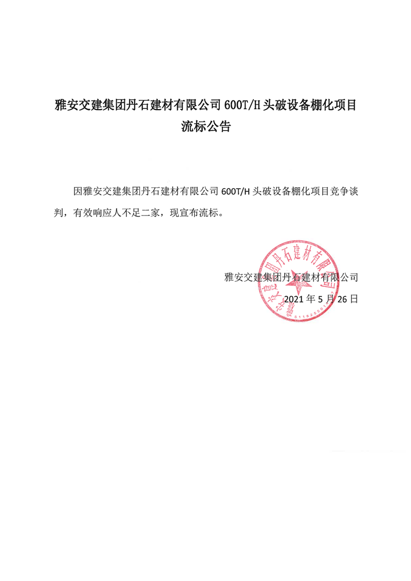 米兰体育-米兰(中国)官网 丹石建材有限公司600T/H头破设备棚化项目流标公告