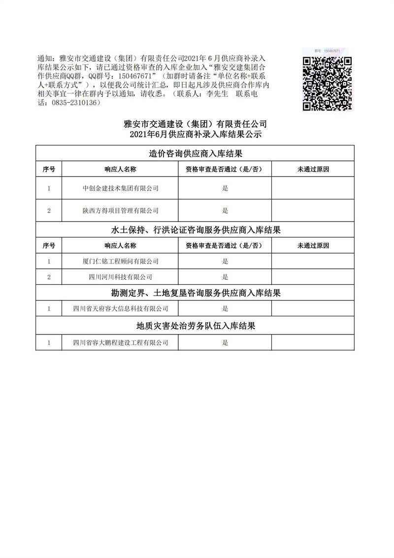 米兰体育-米兰(中国)官网 2021年6月供应商补录入库结果公示
