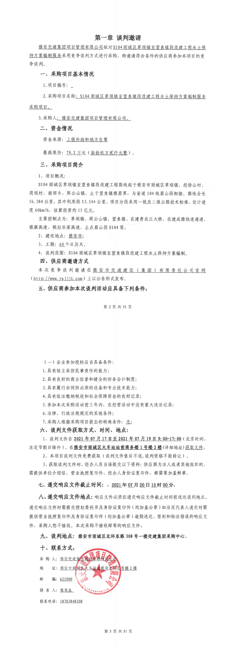 米兰体育-米兰(中国)官网 项目管理有限公司S104雨城区草坝镇至望鱼段改建工程水土保持方案编制服务采购项目竞争谈判公告