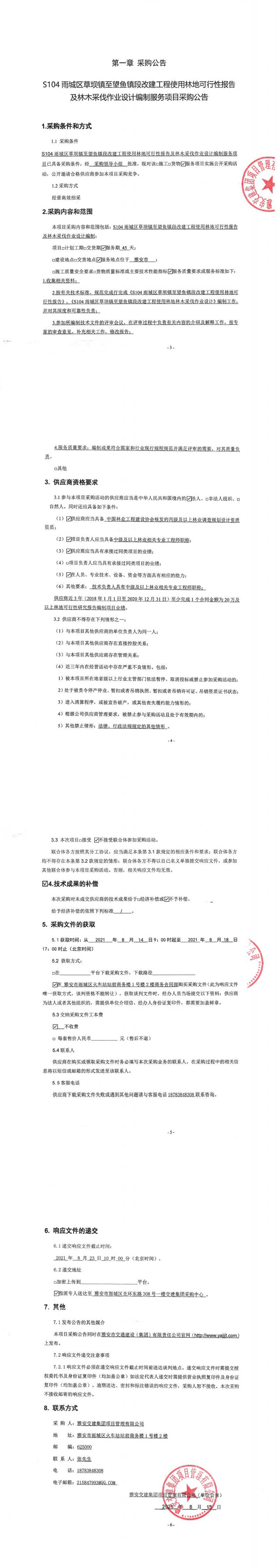 米兰体育-米兰(中国)官网 项目管理有限公司S104雨城区草坝镇至望鱼镇段改建工程使用林地可行性报告及林木采伐作业设计编制服务项目采购公告