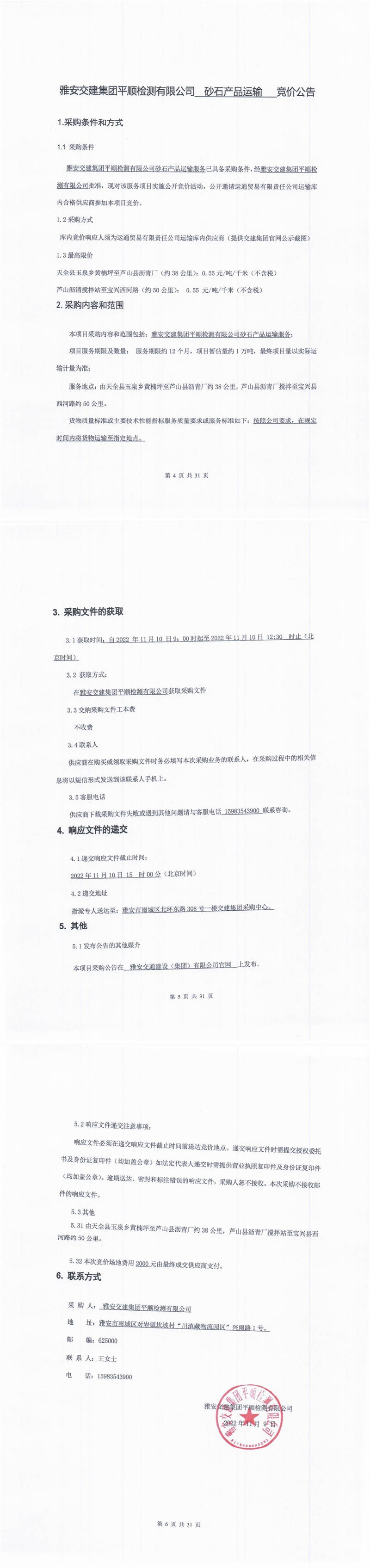 米兰体育-米兰(中国)官网 平顺检测有限公司砂石产品运输竞价公告