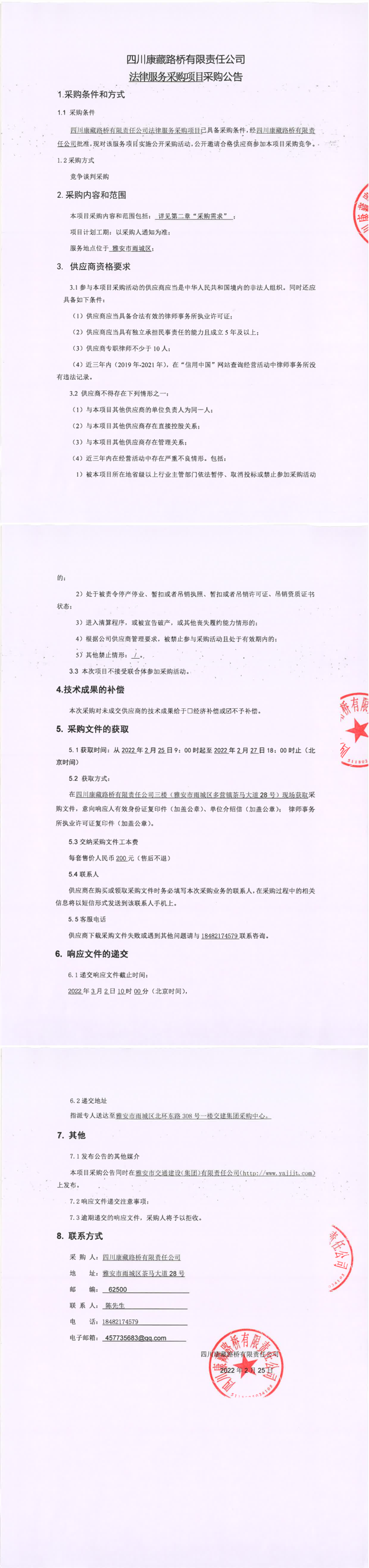 四川康藏路桥有限责任公司法律服务采购项目采购公告
